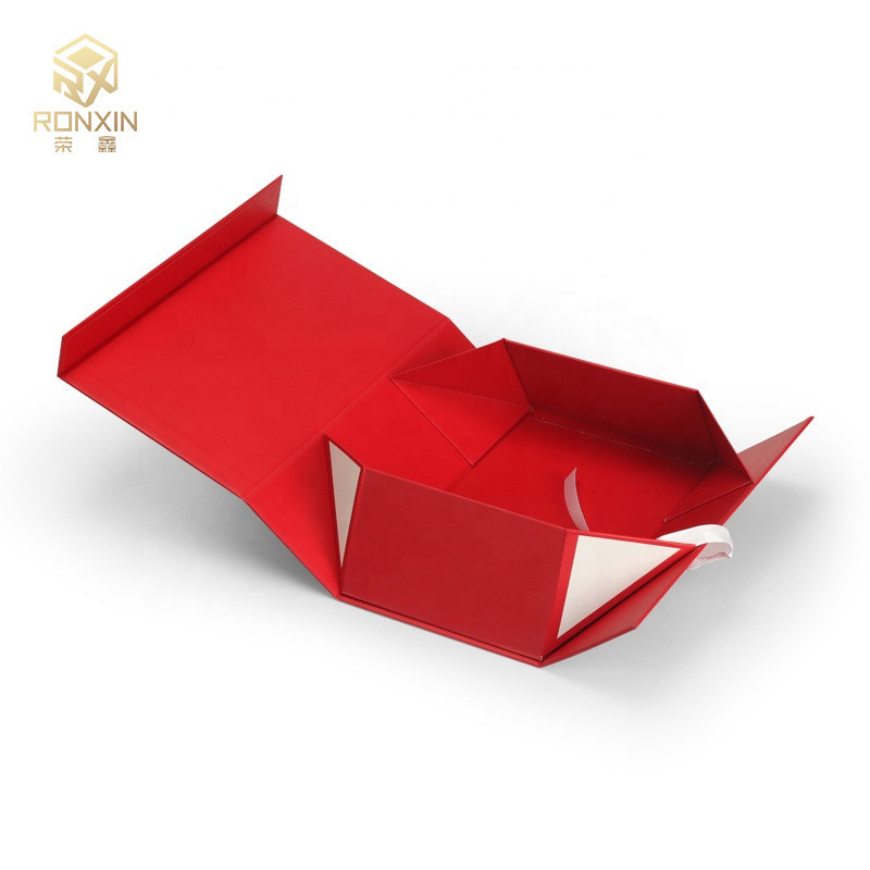 Caja de regalo magnética plegable roja del cierre del cartón con la cinta para el paquete del regalo
