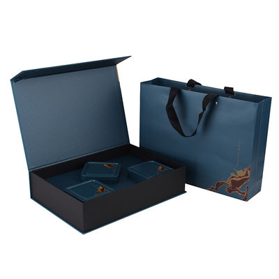 Art Paper Paperboard Gift Boxes azul con magnético para el empaquetado cosmético del regalo