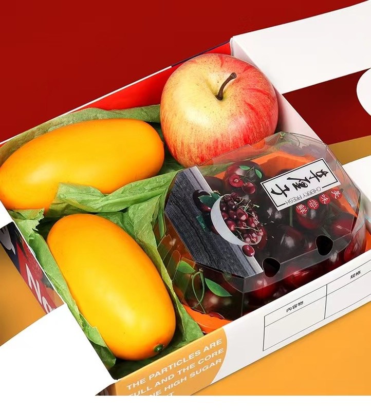 E de papel fuerte colorida flauta acanaló la caja cinco capas de papel con la manija para el empaquetado del regalo de la fruta